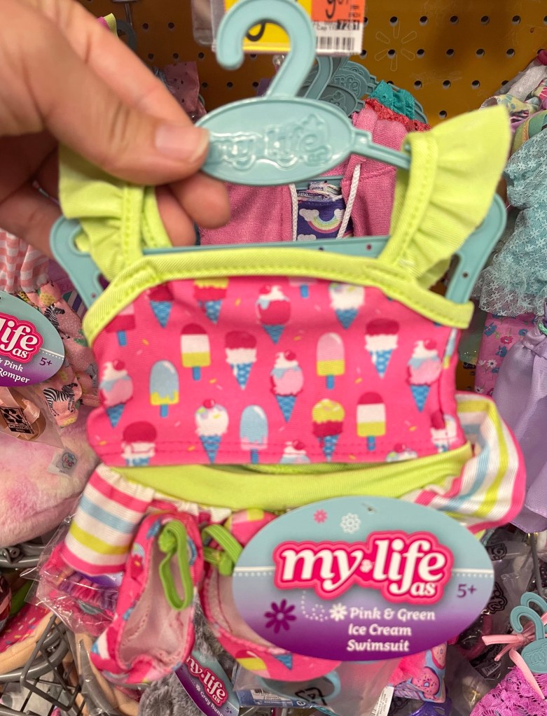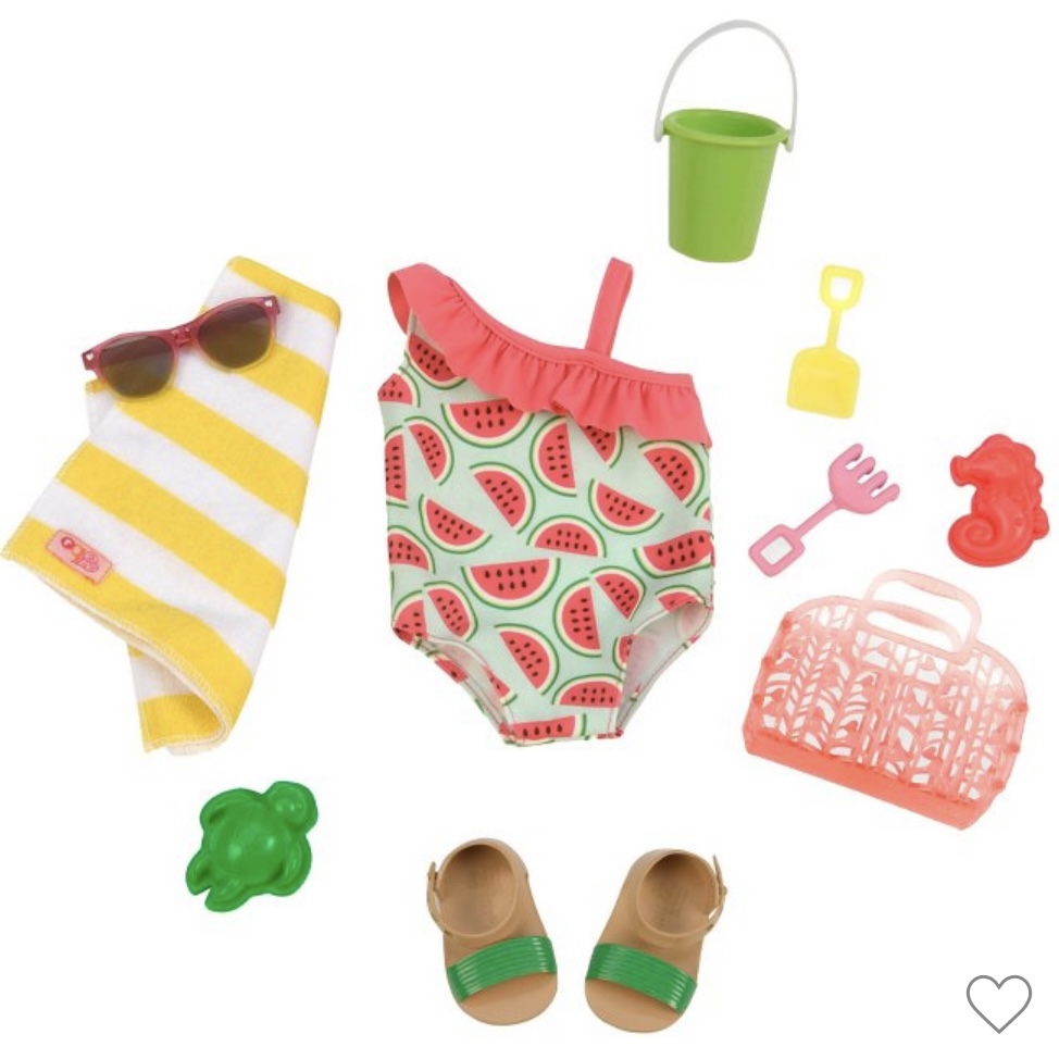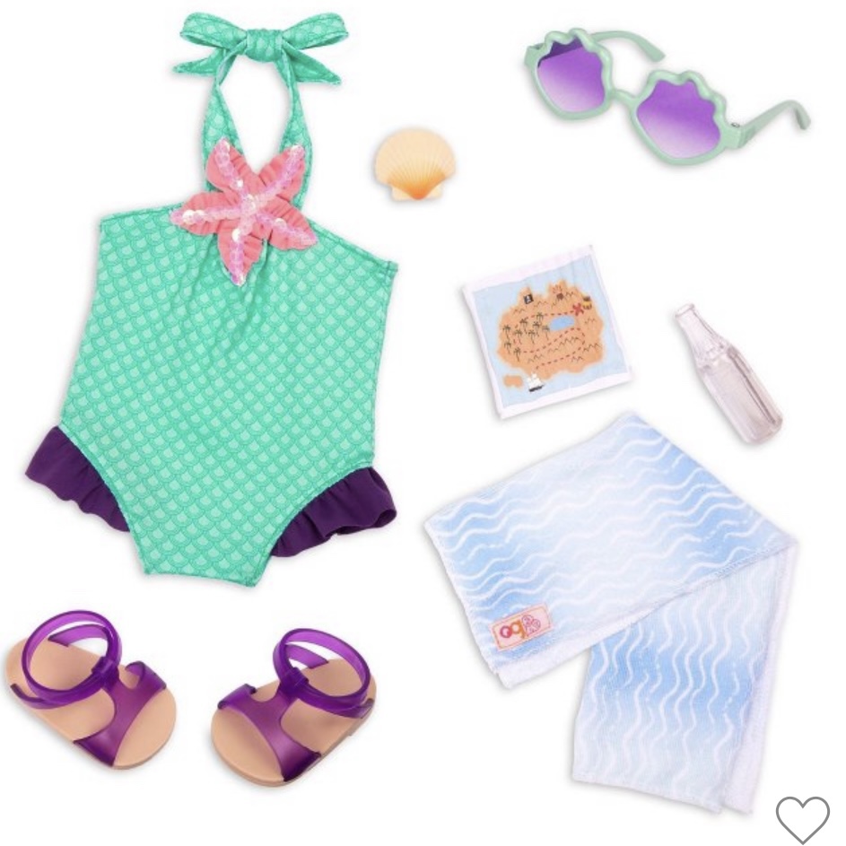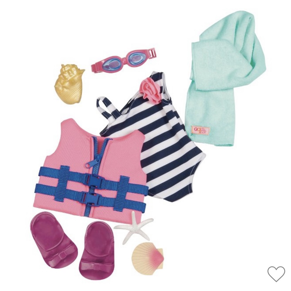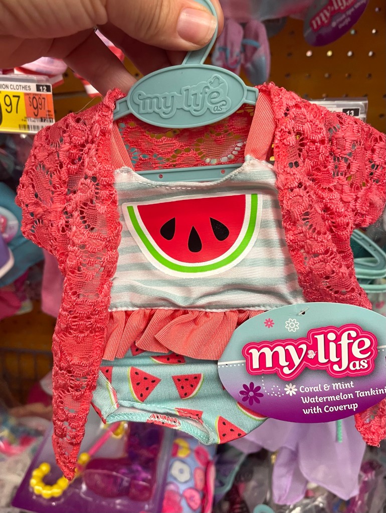We didn’t find swimsuits at our local Target, but there are currently four Our Generation swimsuits available online. These swimsuits retail for $12.99 and are probably better bang for your buck than the Walmart swimsuits because they each come with several accessories. Overall, I prefer some of the Walmart designs to these. Also, I feel like Target has had some of these designs for several years and are due for a little update.
