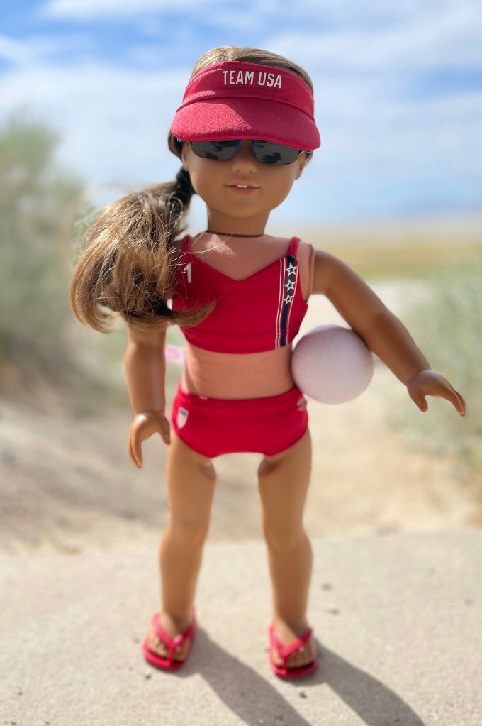Both of the Team USA swimsuits are super cute, and of course we expect good quality from AG. I don’t love that the Beach Volleyball sun visor comes down super low on the doll’s eyes, but at least it’s going to do it’s job in a match I guess. The swim cap in the Swim Set is so cute, although I imagine it might be a struggle to put on (if you have this set comment below to let us know). It reminds me of Chrissa’s (GOTY 2009) cute swim set. Each retail for $32.